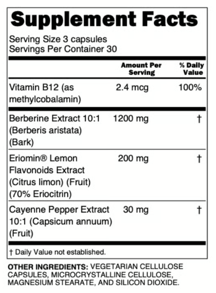It combines Eriomin®, clinically shown to raise GLP-1 levels, with Berberine to support metabolism and Capsaicin to promote GLP-1 release. Together, they help manage cravings, support blood sugar, and boost calorie burn.